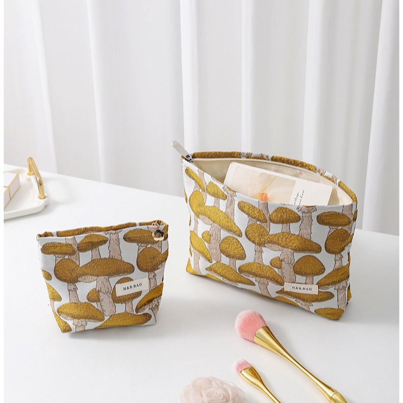 文芸レトロジャカードキノコ化粧バッグ携帯洗面バッグ内胆バッグ旅行スキンケア収納袋キャンバスバッグ
