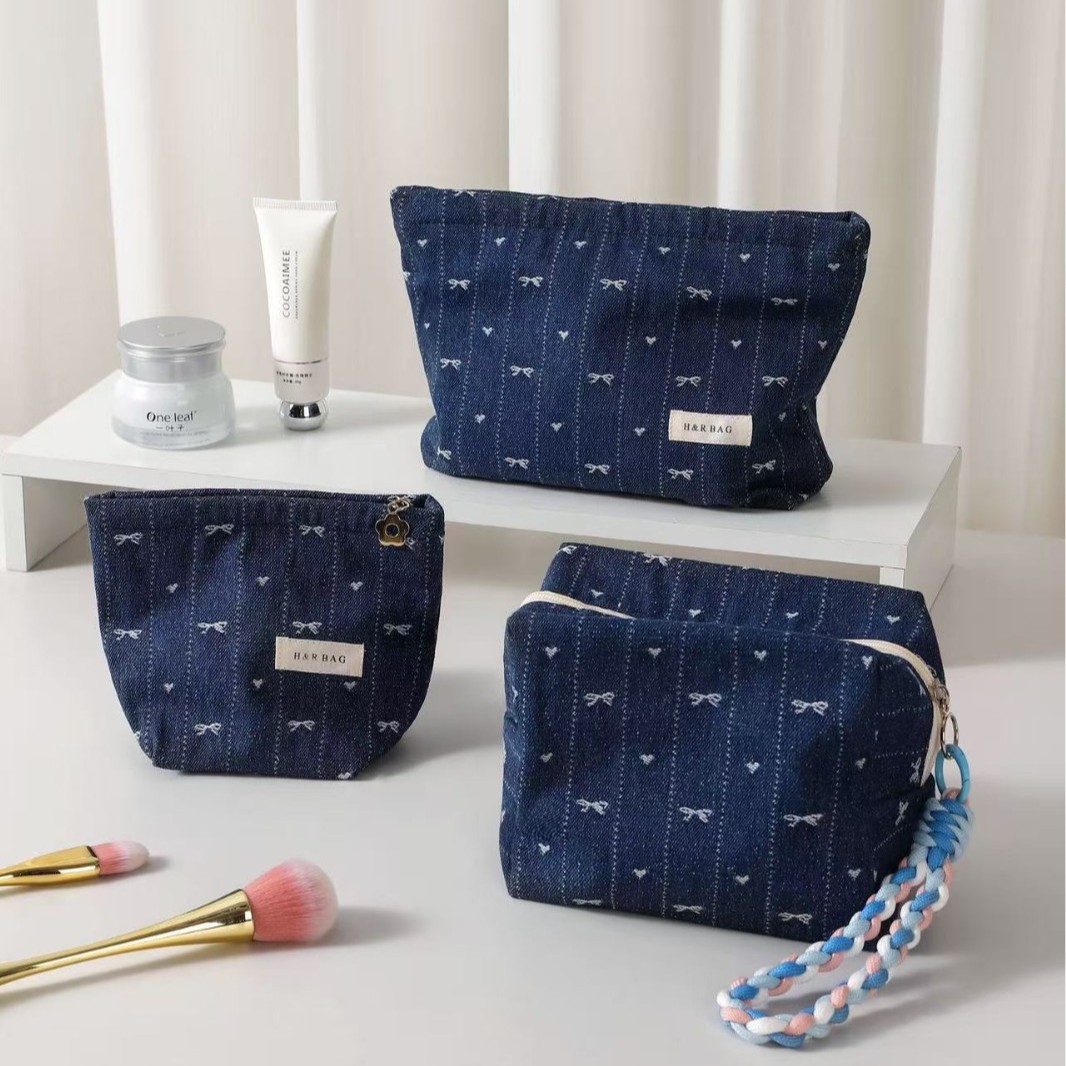 新しいニッチレトロデニムリボンガールズファブリック化粧品バッグポータブルスキンケア製品枕バッグ収納袋