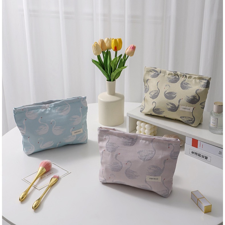 新商品の清新な白鳥のジャカードは色の化粧袋にぶつかります。