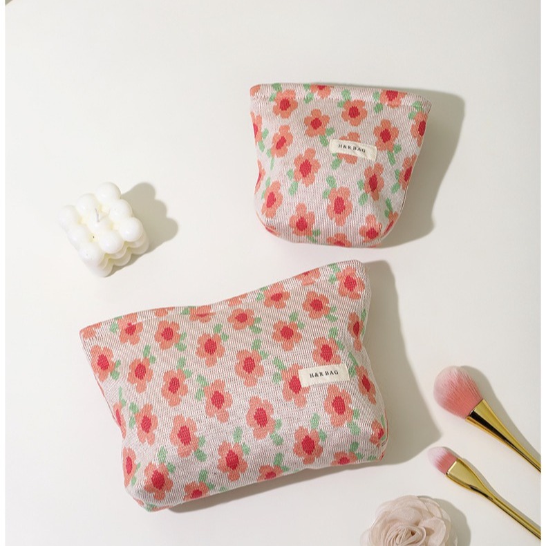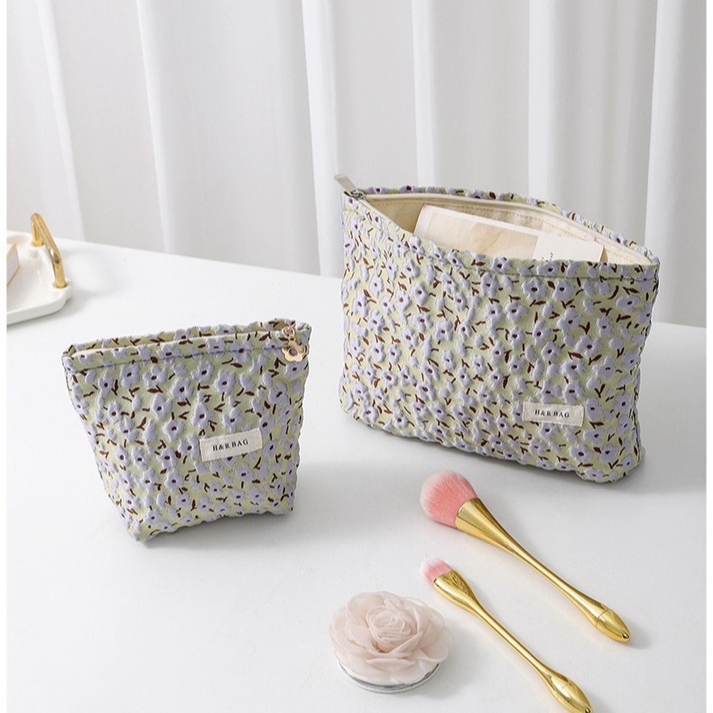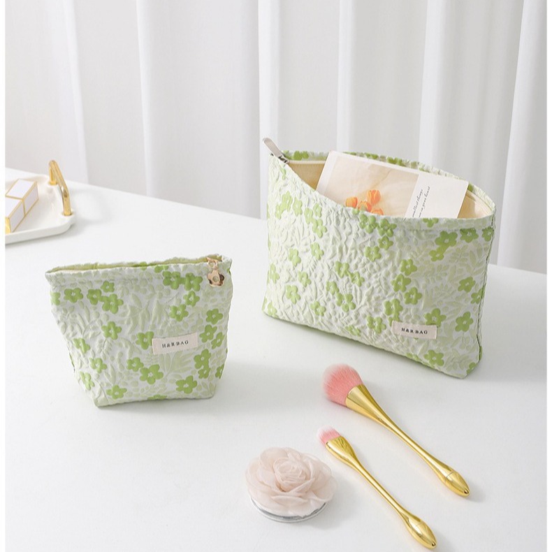 エンボス加工の花柄学生用ポータブル収納バッグ、大容量、フレッシュでガーリーなデイリーマッチング化粧ポーチ、エンボス加工