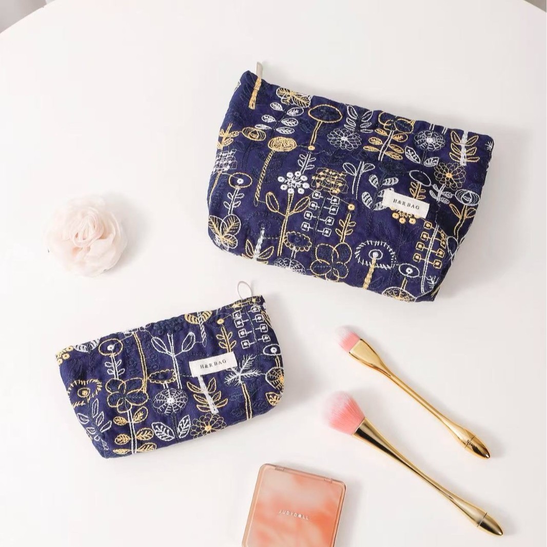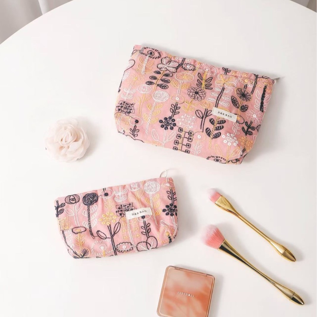 新型清新文芸綿麻刺繍花化粧袋高颜値大容量携帯収納バッグ小銭入れ