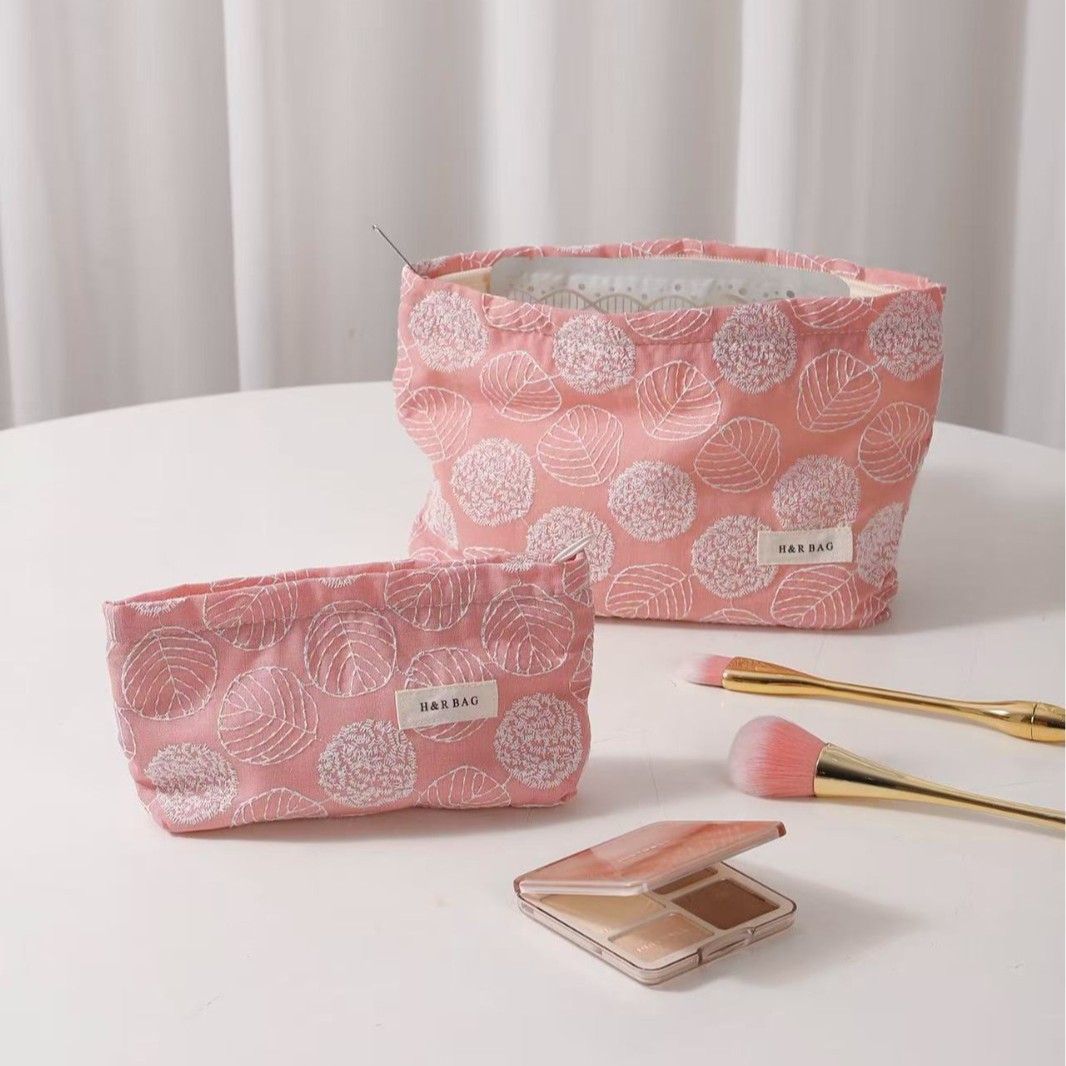 新しいスタイルの新鮮なピンクの花の綿とリネンの刺繍入り化粧品バッグ旅行スキンケア製品収納袋クラッチバッグ
