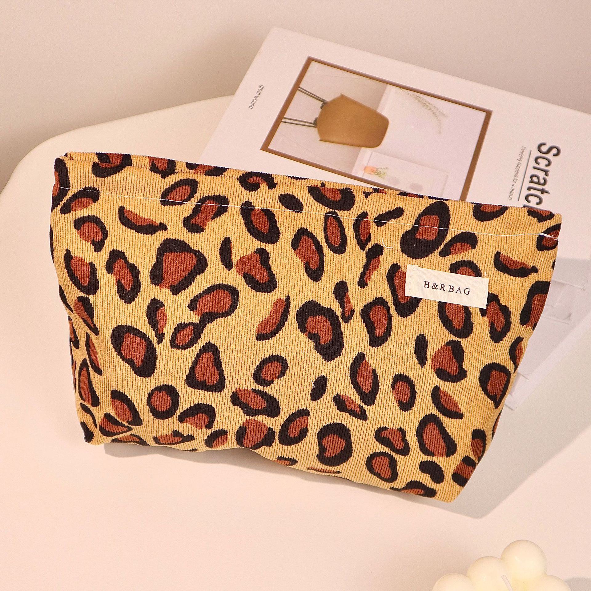 新型レトロ豹紋コーデュロイ化粧バッグ携帯旅行洗濯収納バッグ大容量化粧バッグ現物