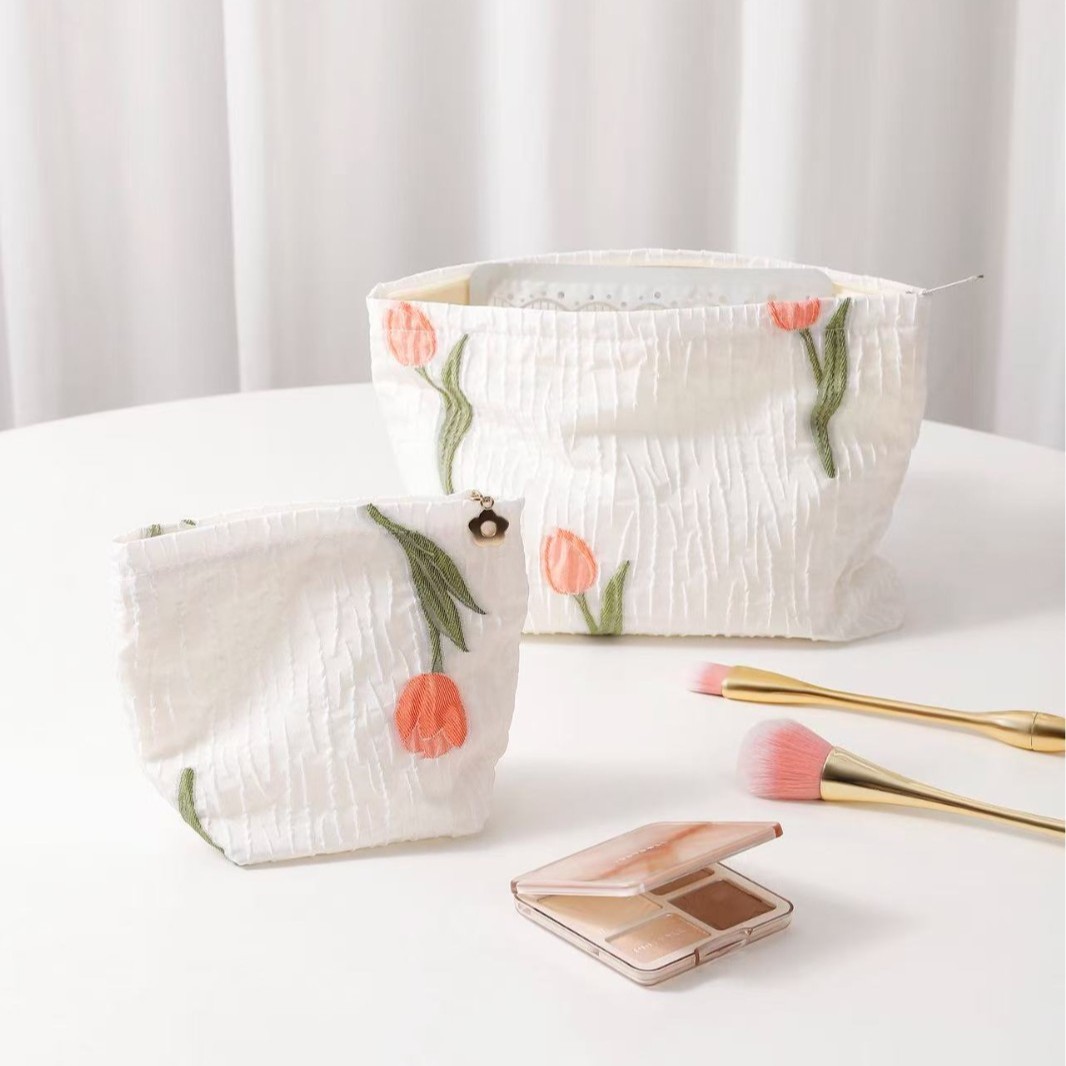 新商品の清新で精巧なチューリップのジャカードの布芸の化粧袋の高い顔の値の携帯のスキンケアの収納袋のハンドバッグ