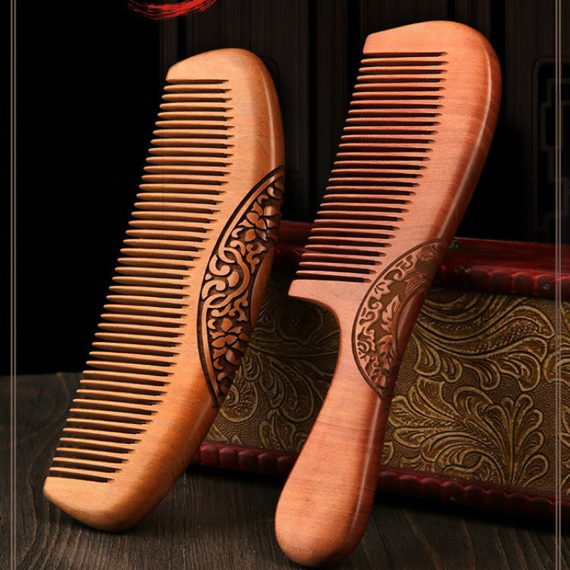 ピーチウッドコーム 天然本物 家庭用木製 無垢材 白檀 静電気脱毛 男女兼用 ロングヘア専用