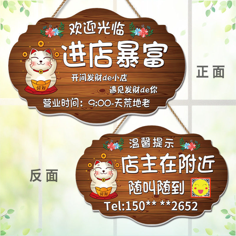 店主は近くで何かを掛けて休憩中に電話の表札の両面で営業中の案内札を歓迎します