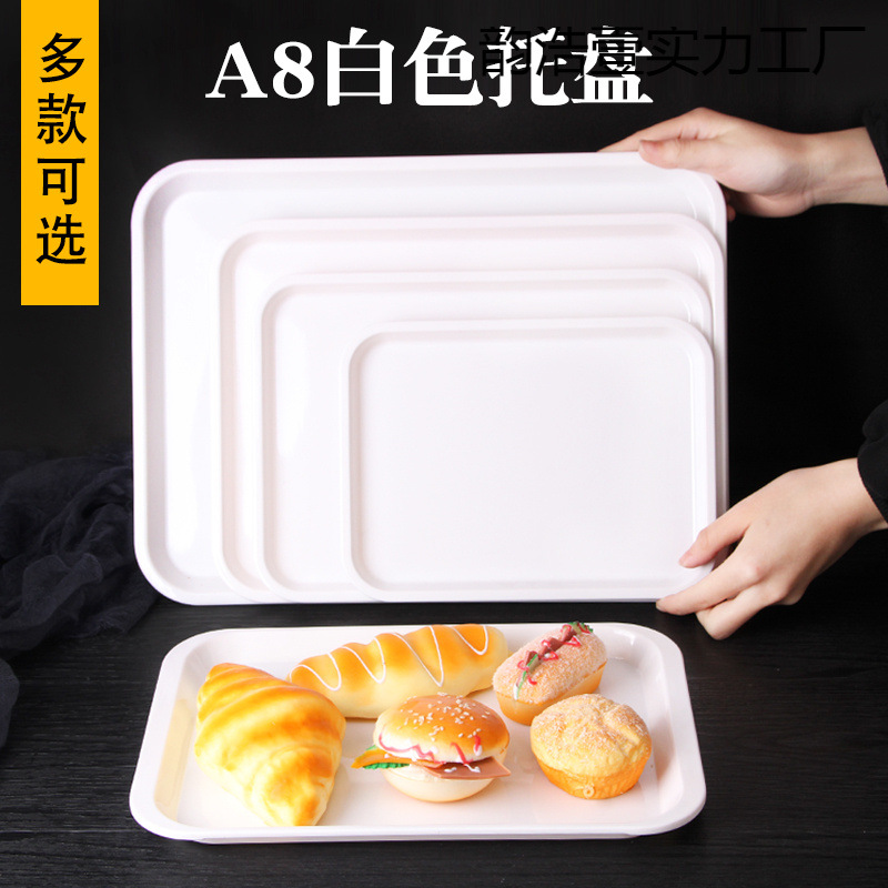 長方形のトレーの商用プラスチックの四角い皿のアイデアの白いトレーのお茶の皿の果物の皿のケーキのパンの皿