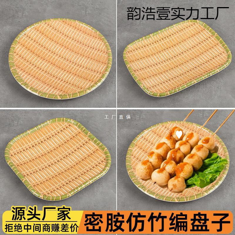 バーベキューの皿の鍋は竹の編みのメラミンのおかずの皿のお菓子の軽食のプラスチックをまねて磁器の特色のホテルの円盤の食器をまねます。