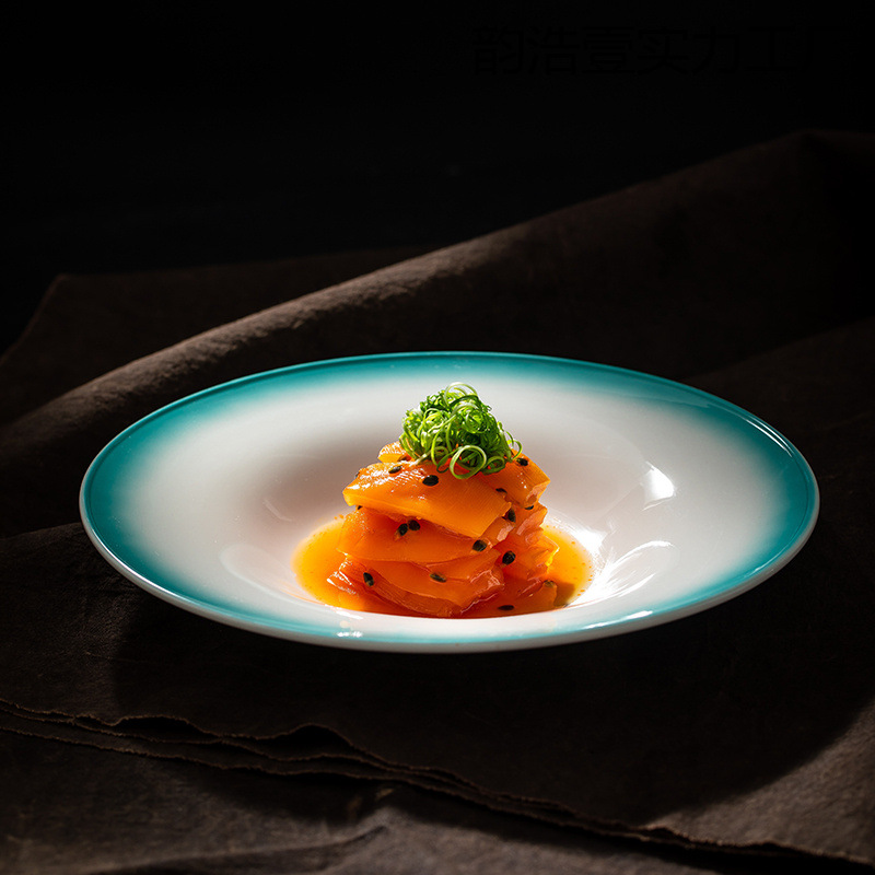 新しい特色のホテルの冷たい料理の皿のレストランのアイデアの色の釉薬の小さい炒め物のスープの皿の熱い料理の明段の円形の陶磁器の食器