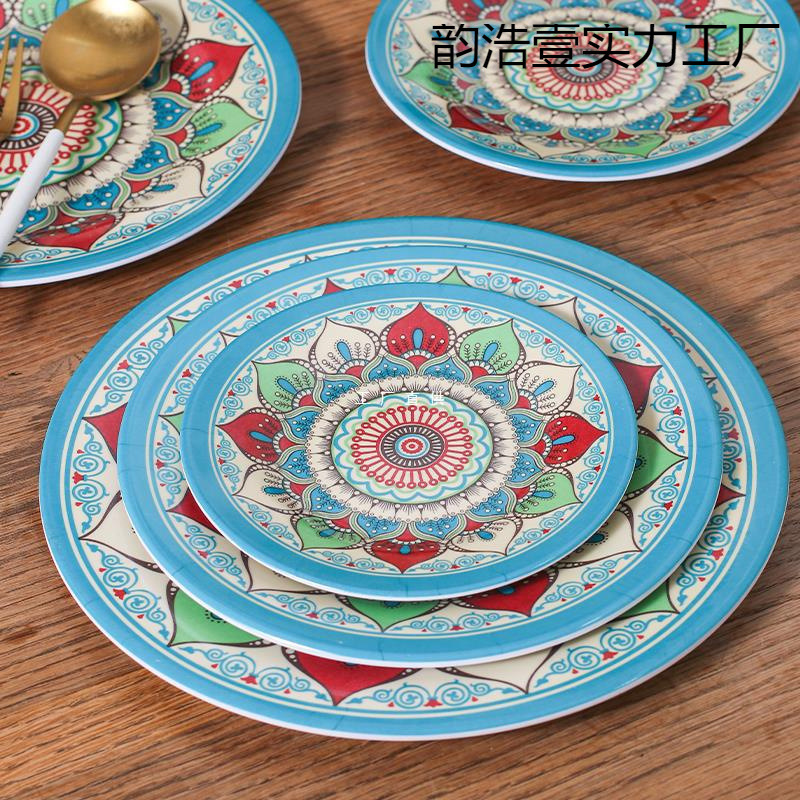 ボミシアメラミン皿高颜値家庭用クリエイティブ凉菜皿果物皿10インチ平皿円盤北欧