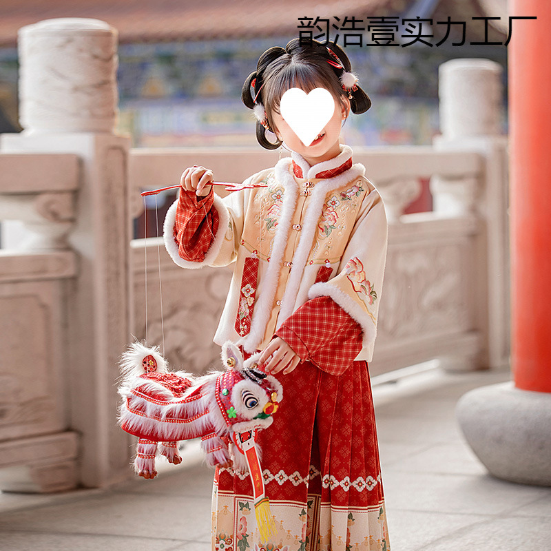 漢服の冬の女の子の冬の服の馬のスカートのスーツの2024冬の秋冬の子供の国風の新年の服の女の子の唐服