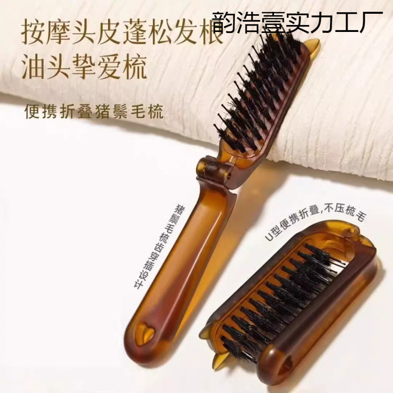 ポータブル折りたたみ猪毛コーム、女性用ヘアコーム、ヘアカーリング、ふわふわスタイリング、ヘアスタイリングコーム