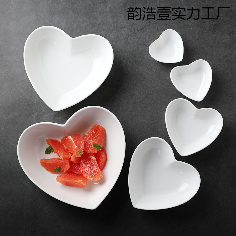 陶磁器の愛の心の形の碗のアイデアのお菓子の碗の果物のサラダの碗のデザートの碗の純白の布の丁の碗は鋳型を焼いて碗を焼きます