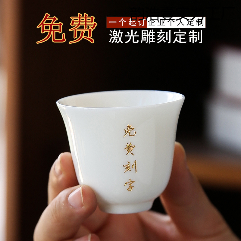 プライベートオーダー品茗杯カンフーカップ主人カップ個人シングルカップ羊脂玉白磁陶磁器彫刻log