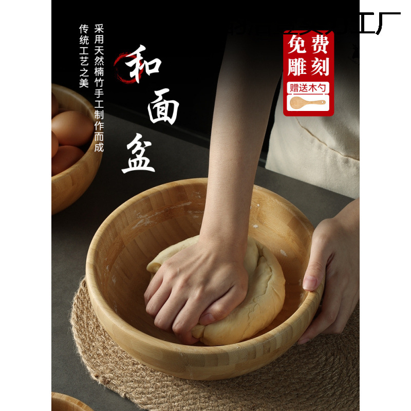 木と洗面器の洗面器の大きいサイズの日本式の洗面器の厚い竹の碗の野菜のサラダの碗のマスクの碗は字を彫っています。