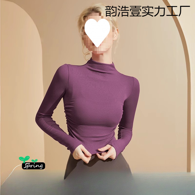 フィットネスの女の子は腰を収めてセクシーなヨガの服の長袖のプラティの半高の襟の修身の弾力の運動の上着とベルベットの金を締めます。