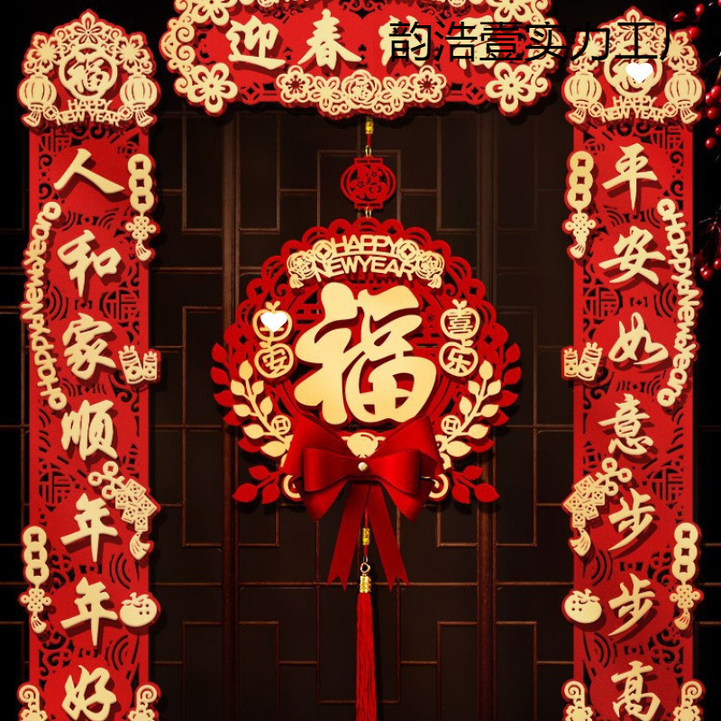 磁気吸引対聯2025蛇年新型春聯旧正月家庭用玄関装飾立体植毛福字ドアシール