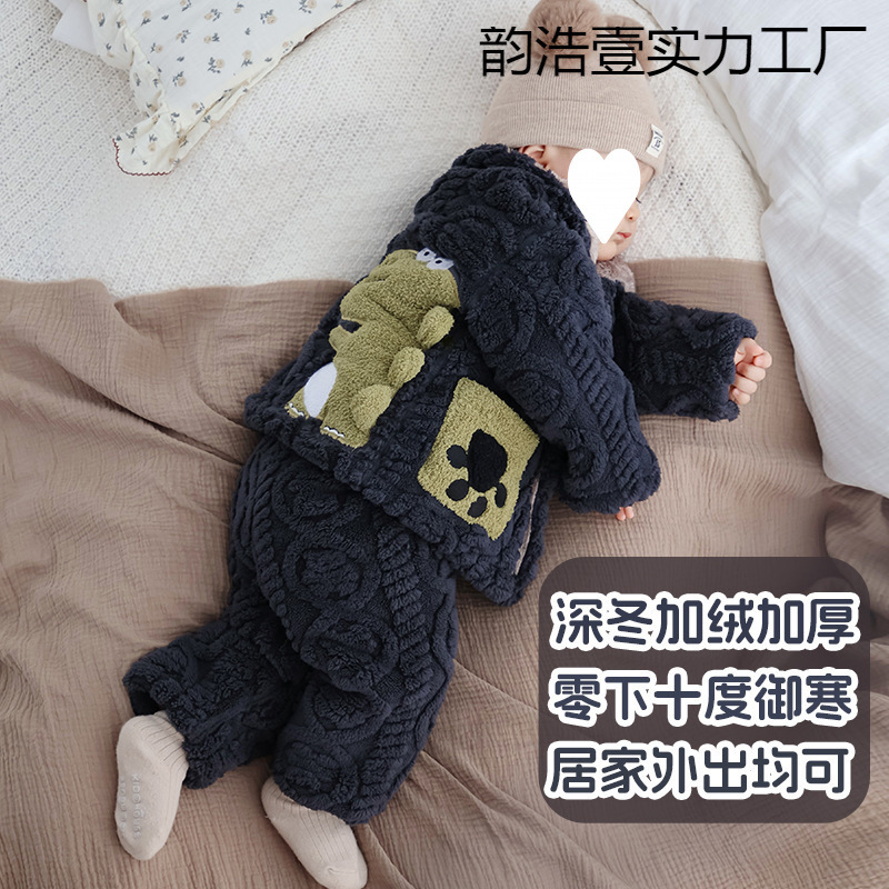 赤ちゃんのパジャマ冬のベルベットの厚い金の三層は綿の子供の男の子のフランジサンゴのベルベットの赤ちゃんの綿入れの上着を挟んで寝ます