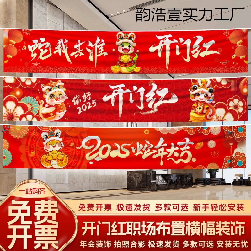 2025開門紅雰囲気配置蛇年保険会社の新年シーンは元旦の丸い横断幕の背景布を飾ります。