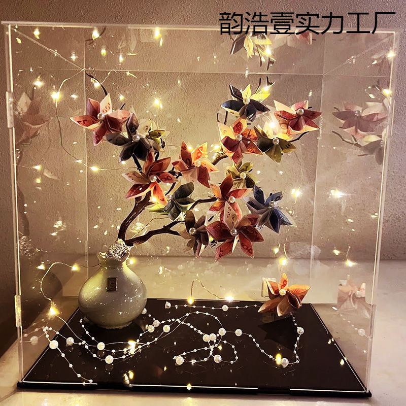 高級金持ちの木はお金の花束を持っています。材料セットは永遠の花を包んでいます。