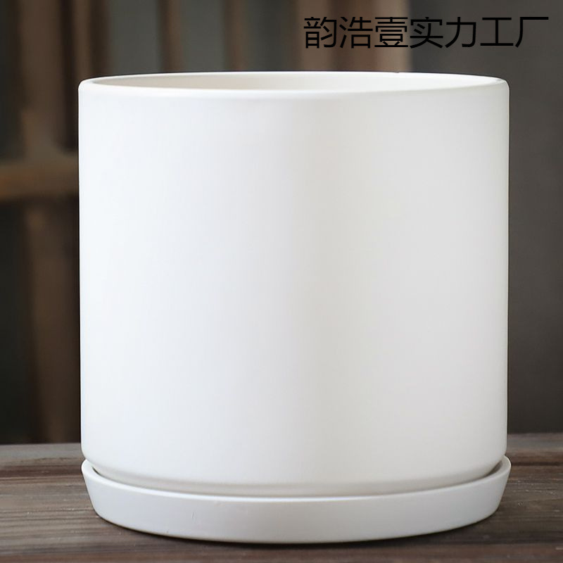植木鉢陶磁器大サイズトレー付き北欧室内吊り蘭緑羅多肉円柱植木鉢凌之凌之