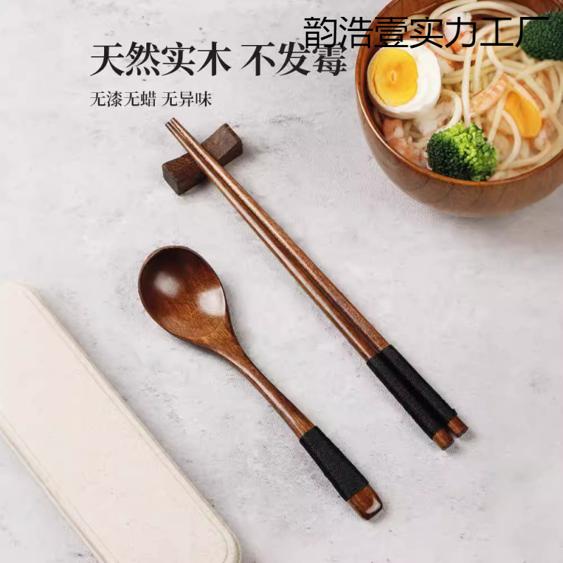 食器三点セット児童生徒用外付け収納ケース箸スプーンセット木製一人用ポータブル