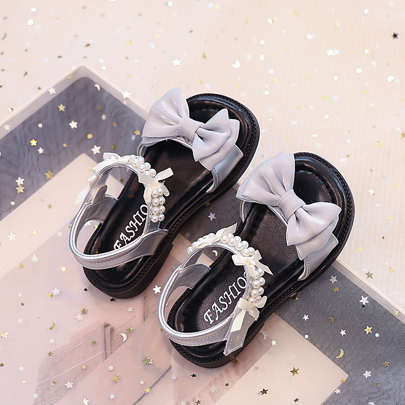 2025 夏の女の子のサンダルリボンプリンセスシューズ韓国スタイルのビーチシューズ子供の柔らかい底の靴中型および大型の子供のアウターウェア