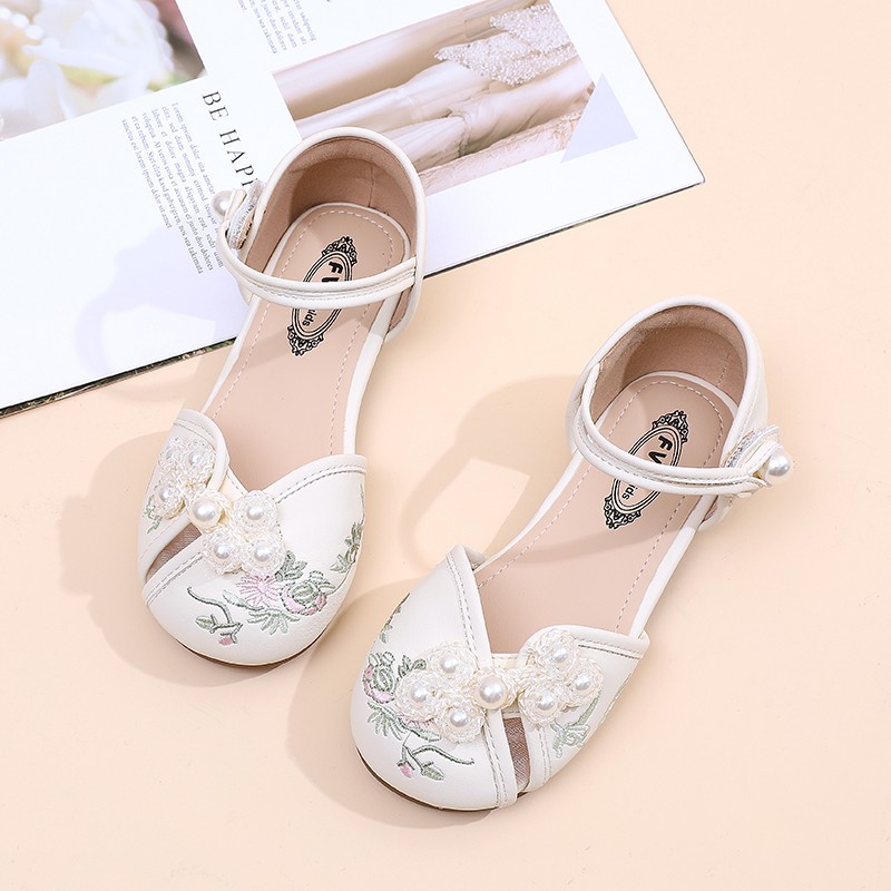 女の子 2025 夏の新しい漢服靴中国風サンダル女の子馬面スカート子供靴中国風の古代スタイルの刺繍靴