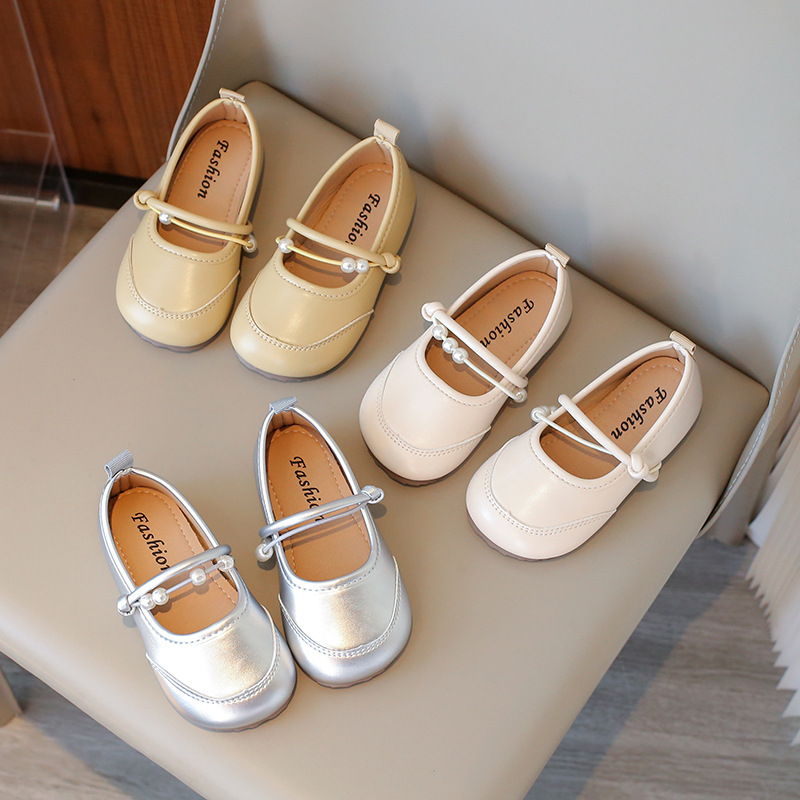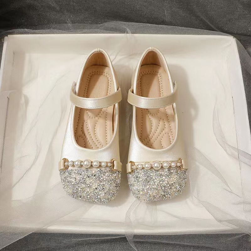女の子の四角い靴の新製品2024春ファッション洋気児童真珠単靴とドレスの柔らかい底の王女靴