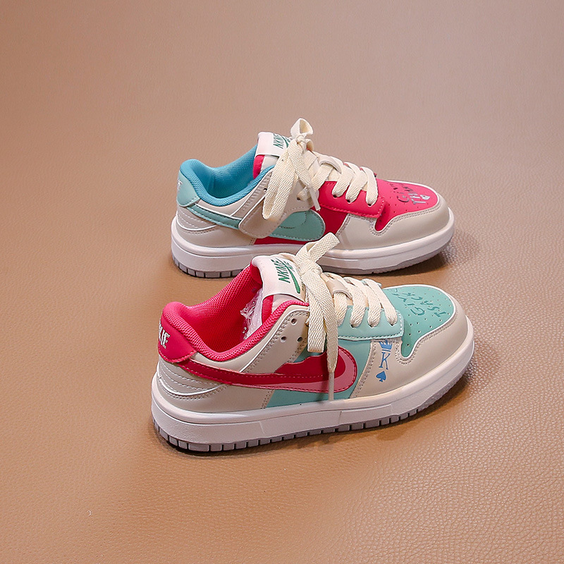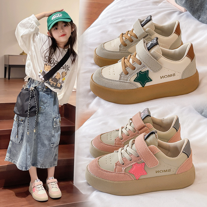 女の子の靴のレジャーの子供の運動靴の2024の新型の春秋の柔らかい底の中で大きい子供の韓国版の星の板の靴の学生