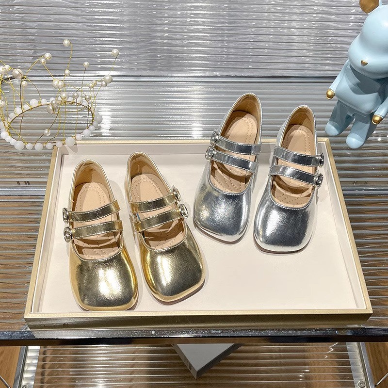 王女の靴の女の子の靴の2024の新型の春と秋の子供の靴の銀色のメアリー珍の女の子の蝶結びの子供の靴