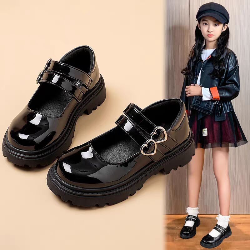女の子の靴2024春秋のファッション子供の演出靴の黒いダンス靴の中の大きい子供のメアリー珍の王女の靴