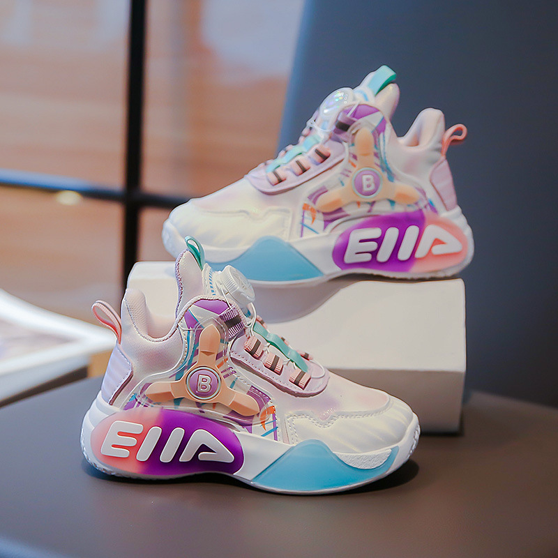 子供靴春秋タイプ2024新型男の子スポーツバスケットボール靴回転ボタン女の子ランニングシューズ中大童クール