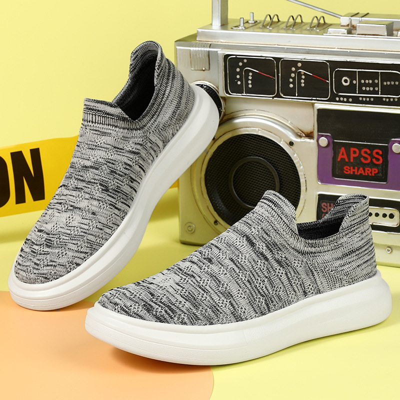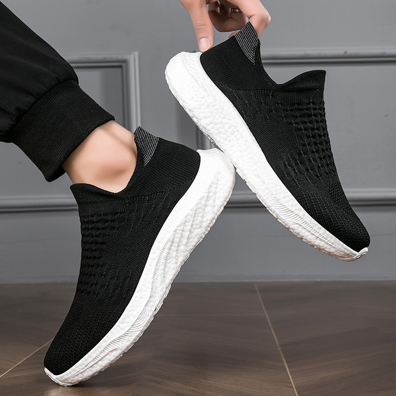国境を越えた人気の紳士靴、新しいフライウーブンソックスシューズ、通気性と軽量のスリッポンメッシュシューズ、メンズカジュアルスポーツシューズ