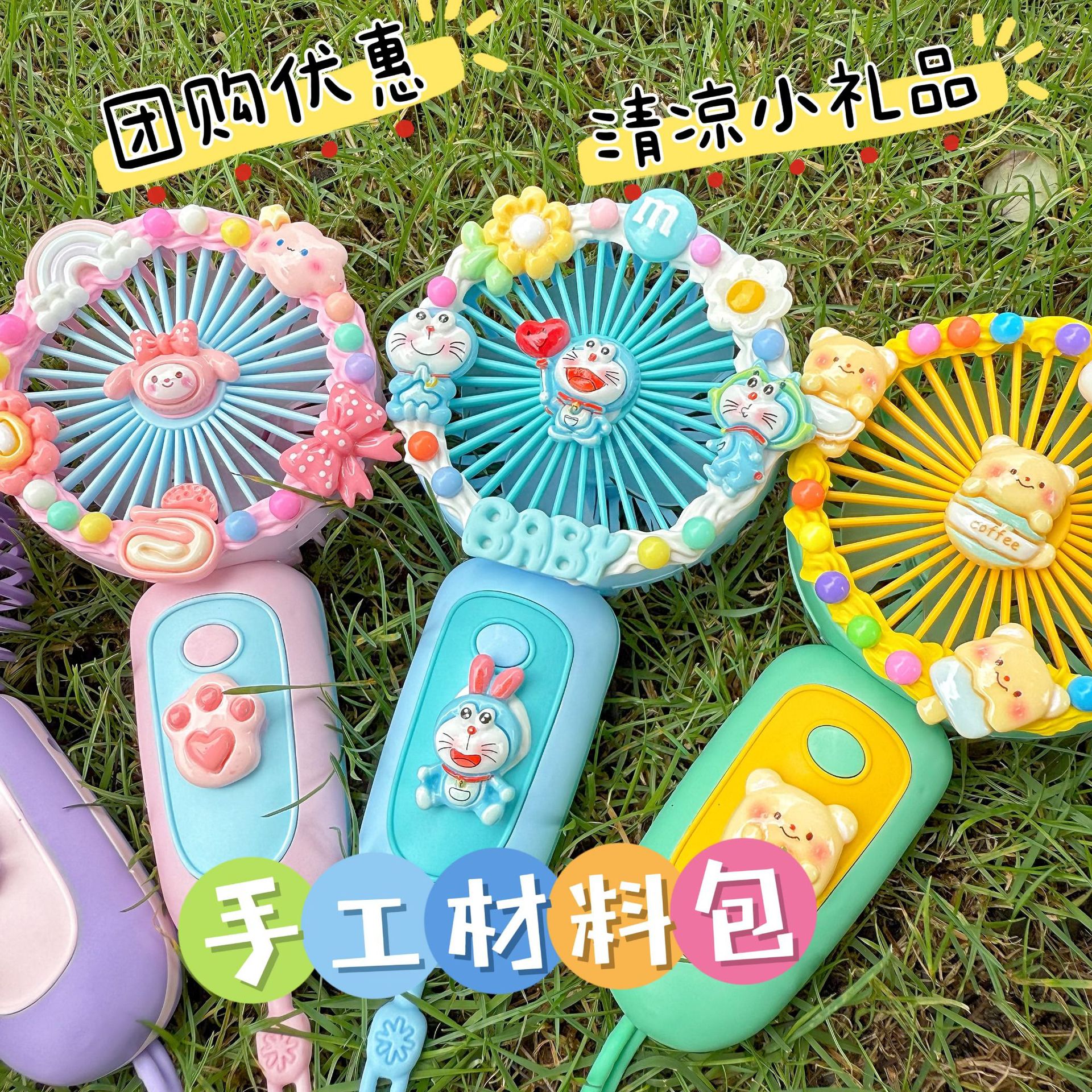 クリームゴムdiy手作り材料バッグデスクトップusb充電ハンディ小ファン学生寮携帯静音少女
