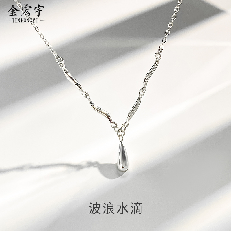 925 スターリングシルバー不規則な波状ウォータードロップネックレス女性用韓国スタイルのファッショナブルで高級な鎖骨チェーン、インスタ映えするセーターチェーン