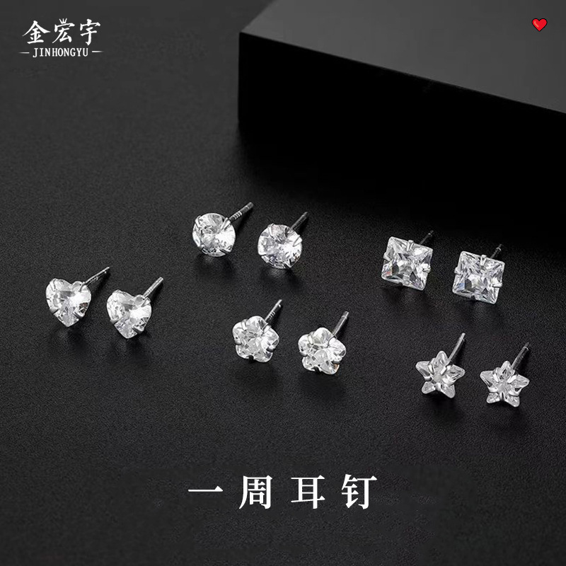 999純銀四爪ピアス女性ins軽贅沢高級感養耳穴ピアスシンプルで小型ネット赤小衆イヤリング