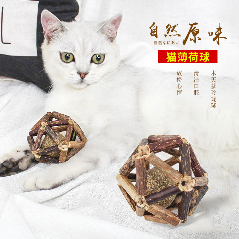 木の天のタデの精巧な玉は猫のミントの猫のおもちゃのボールを含んでいます。