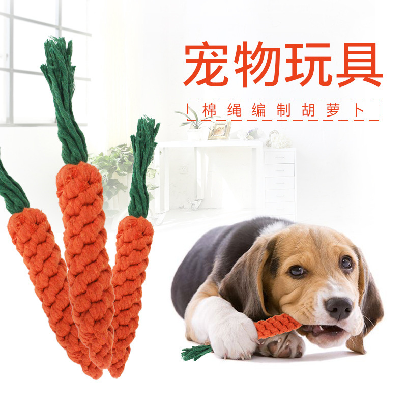 小型犬のペットの綿のひものおもちゃの犬は綿のひものニンジンの犬を編みます。