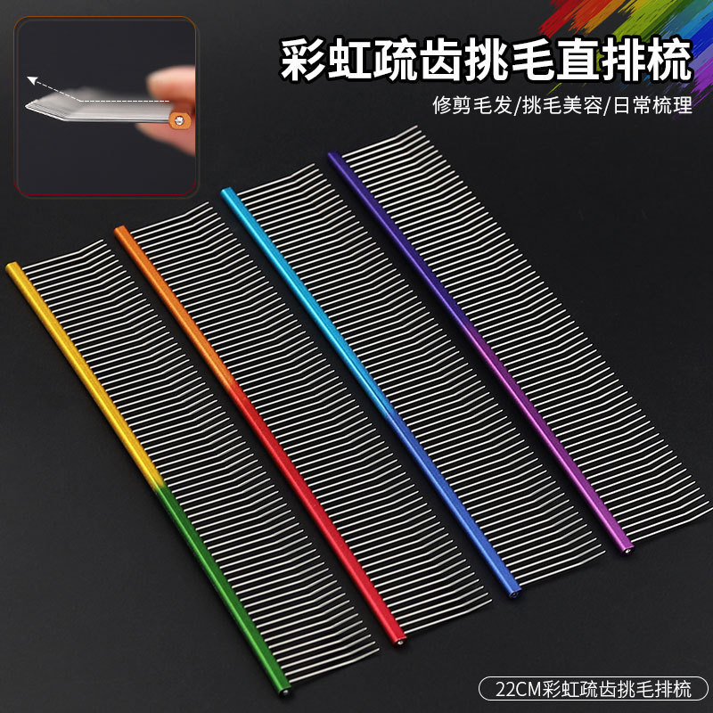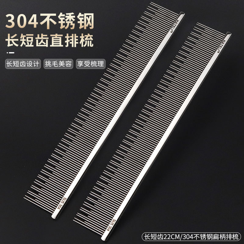 ペットグルーミングコーム、犬用コーム、ステンレスコーム、猫ゴールデンレトリバーテディグルーミングストレートコーム、ピッキングコーム19cm