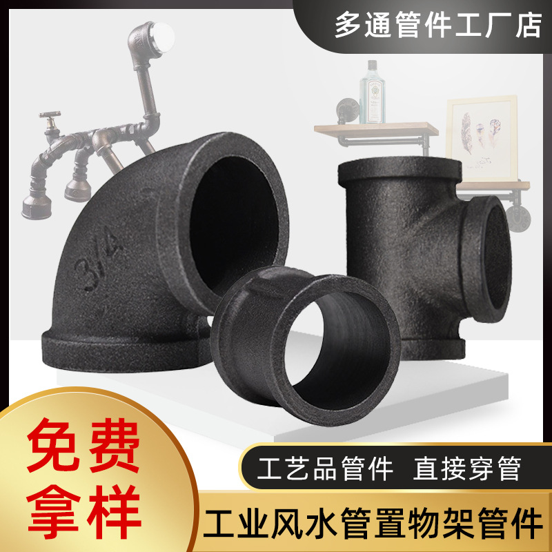 レトロ工芸品loft水管物置棚エルボ三方管箍穿管無歯黒品瑪鋼管件