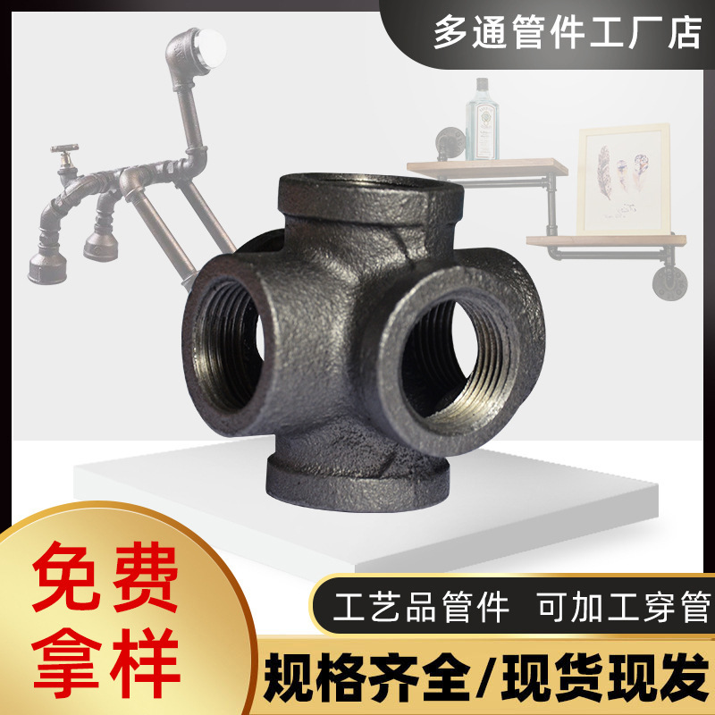 瑪鋼管件鉄芸水管家具部品工芸品loft黒色鉄四通立体四通