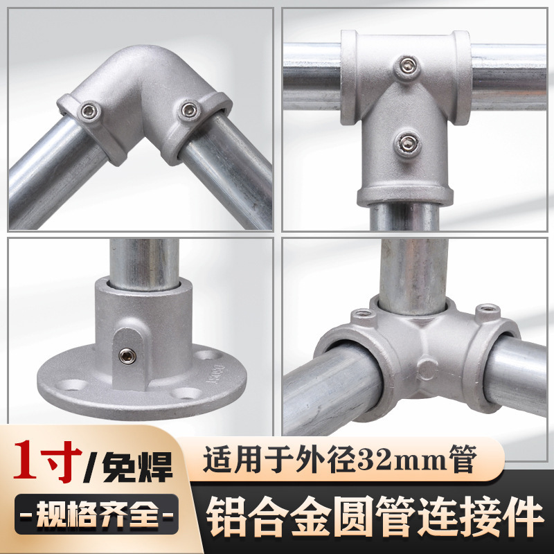 32mmアルミニウム合金鋼管接続固定継手1インチ留め具エルボ三方亜鉛メッキ円管コネクタ