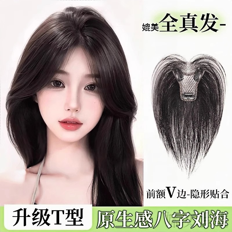 女性用の8の字前髪ウィッグ、頭頂部の増毛、ふわふわの高頭頂部、白髪をカバーする人毛を模倣した偽前髪