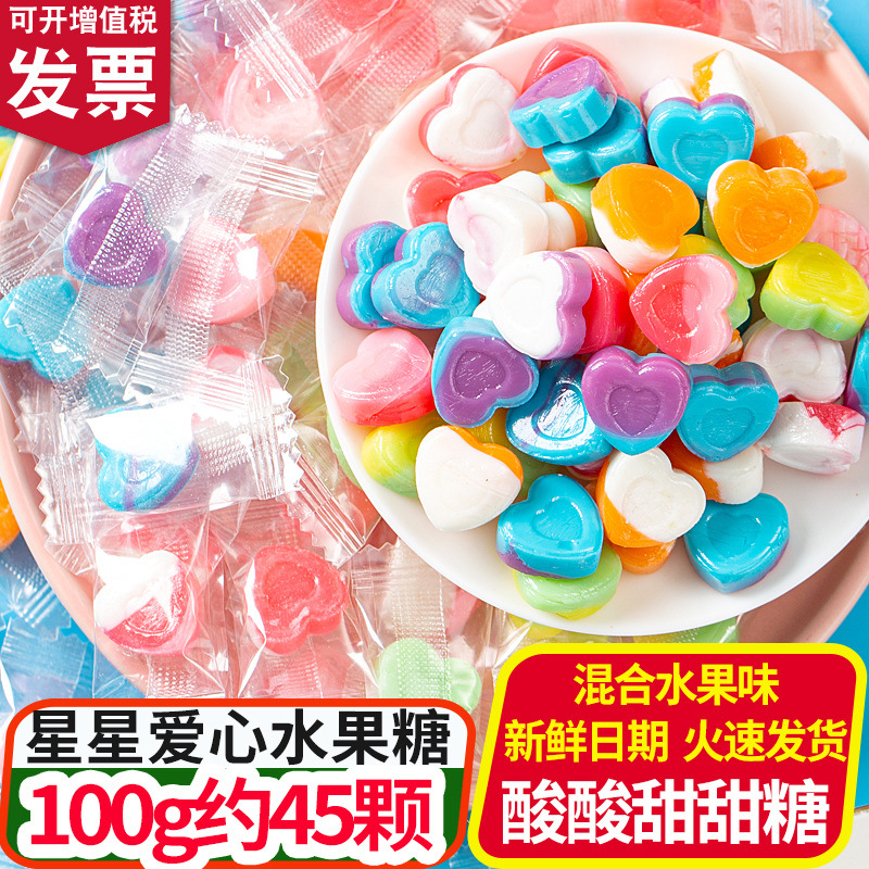 網紅高颜値ハート型糖愛心金果物味硬糖喜糖果小間食ばら売り国産糖