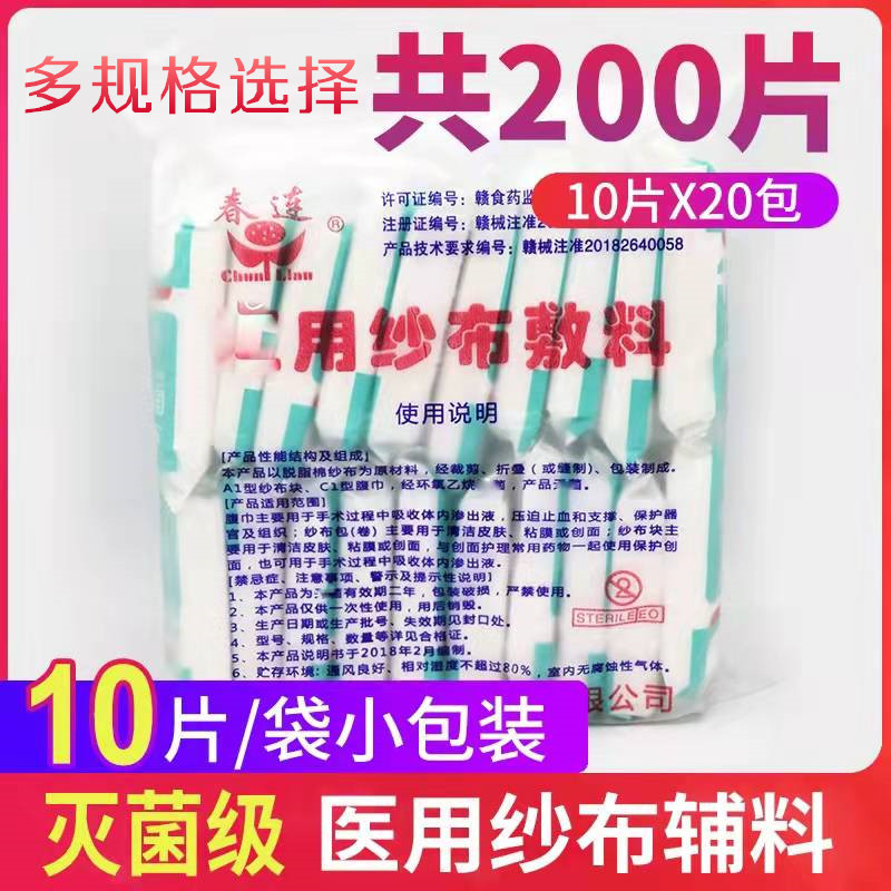 春莲医用纱布敷料 医用纱布块 纱布片脱脂棉纱布 灭菌200片/包