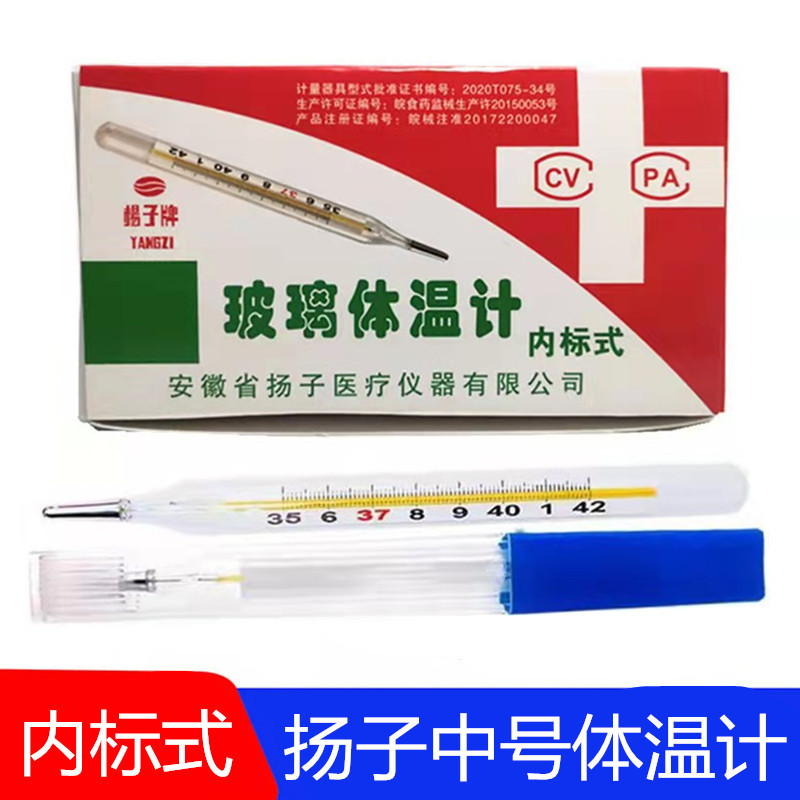揚子中号ガラス体温計内標式腋窩水銀温度計体時計棒温度計