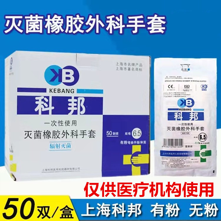 上海科邦使い捨て滅菌ゴム外科手袋上海科邦無粉外科手袋粉あり