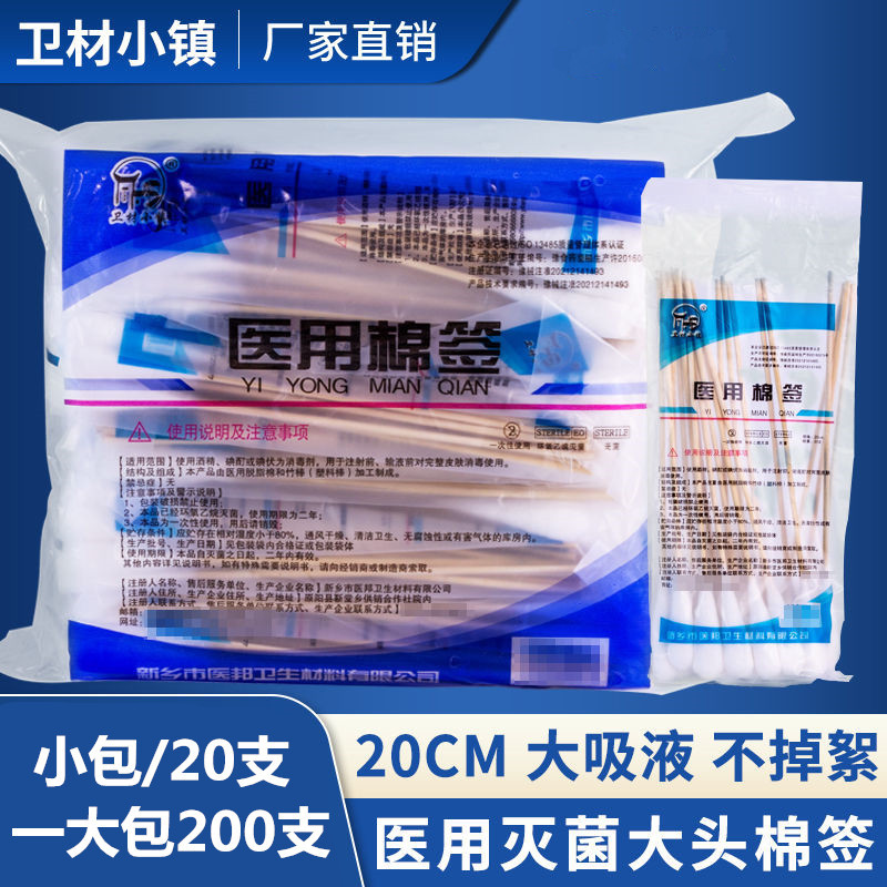 Weijia Town 医療用綿棒 20cm 滅菌綿棒 消毒綿棒 200本/パック 大パック