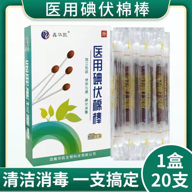 鑫華凱医療用ヨウ素ボルト綿棒二重綿棒家庭用消毒ヨウ素ボルト綿棒20本/箱